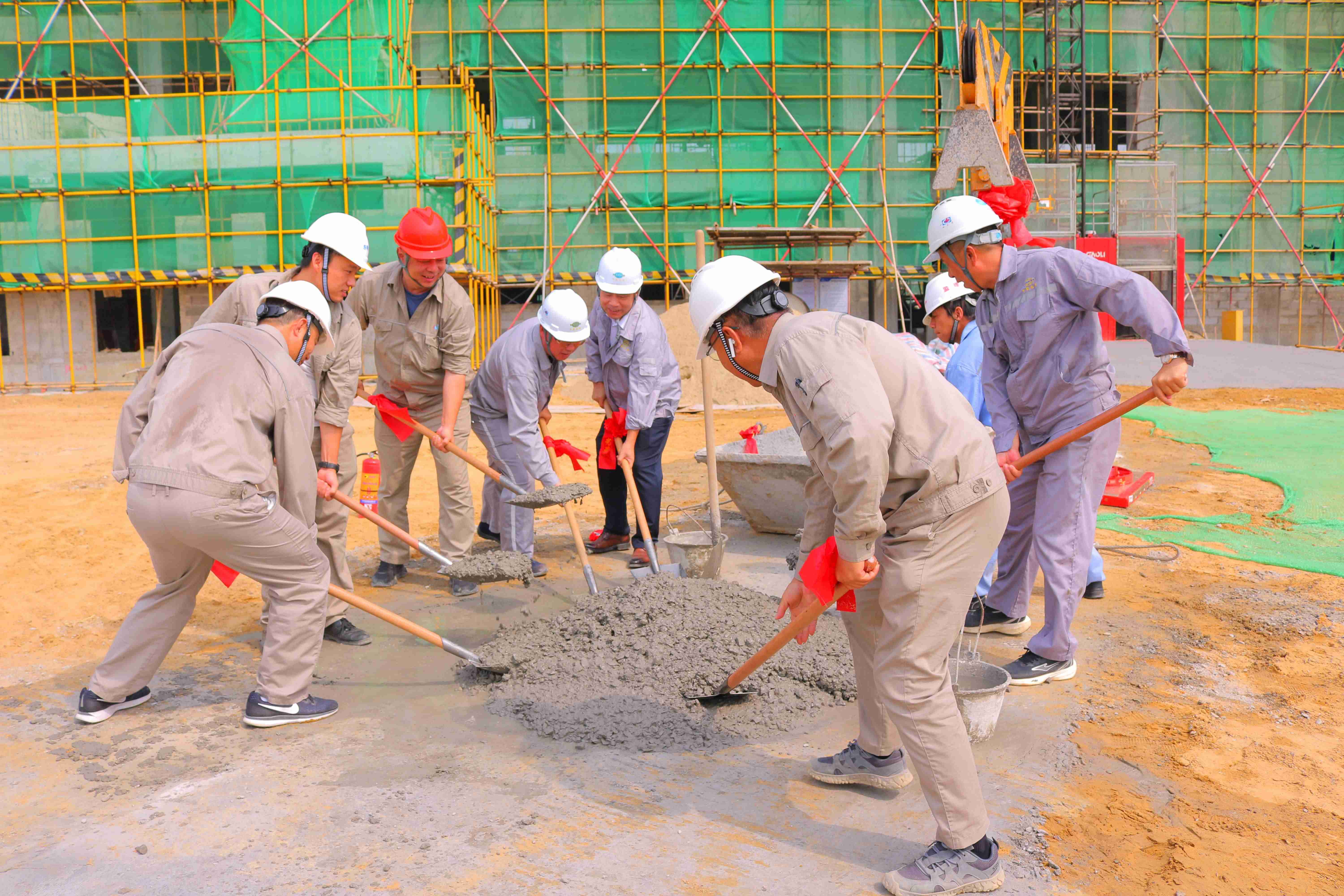 時(shí)風(fēng)澍雨釀花天,吉日良辰喜報(bào)連。8月8日,隨著最后一段頂板混凝土完成澆筑,20萬噸/年混合廢塑料資源化綜合利用示范性項(xiàng)目辦公樓結(jié)構(gòu)喜封金頂,標(biāo)志著項(xiàng)目階段性節(jié)點(diǎn)順利完成,為年底建成投產(chǎn)奠定了堅(jiān)實(shí)基礎(chǔ)。惠城環(huán)保集團(tuán)子公司廣東東粵化學(xué)科技有限公司總經(jīng)理李恩泉、中國化學(xué)工程第四建設(shè)有限公司華南分公司黨委書記尋飛躍、廣州石化建設(shè)監(jiān)理有限公司總監(jiān)理工程師盛筠等領(lǐng)導(dǎo)出席封頂儀式。